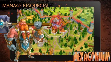 Hexagonium – интересная стратегия на базу андроид, в которой твоей целью будет выстроить собственное царство и стань на его защиту от противников. Выстраивай собственное царство на интересных шестиугольных плитах миз, доставай важные ресурсы и борись с противниками. Будь мудрым руководителем и смелым полководцем, которому по силам разработать собственное царство и привести его к цветению. Зазывай себе на службу солдат и поднимай список личной армии. Доставай необходимые ресурсы и за их счет поднимай саму экономику своего царства. Выстраивай башни для защиты и строй не менее высокие стены, чтобы спрятаться от нападок противника. Создай замечательные альянсы с товарищами и проведи свою широкую армию, в которой есть и пехота, и лучники и кавалерия и не только такое солдаты в бой. И будь не приклонен перед армией противника.
