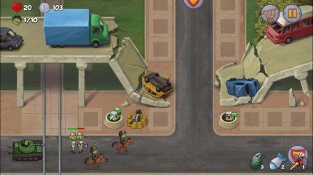Zombie Town Defense – насыщенная красками игра. В ней вы будете сражаться с полчищами зомби, которые будут злобно атаковать ваш город. Но самой главной вашей задачей, будет предотвратить апокалипсис, защитить от монстров стратегически важный аэродром. Смело встречайте монстров, используя для этого всевозможные виды оружия, не дайте им осуществить свои злобные планы. На свое усмотрение, вы можете использовать башни, всего их четыре. Пользуйтесь огнеметами, пушками, ракетами, устраивая ловушки для зомби. Следите за укреплением своих башен, и злобным тварям не удастся вас победить и захватить город. Русский язык: неизвестно