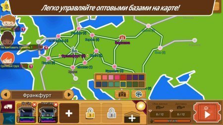Logis Tycoon Evolution – в этой игре вашей основной задачей будет перевозить грузы. Став хозяином транспортной компании, вам необходимо будет доставлять товар по всем странам. Нужно будет начать работу с небольших заказов и постепенно увеличивать их количество для построения различных баз и аэропортов. Вам предстоит собирать весь товар на разных оптовых базах и отправлять их по городам, а если заказчик находится в других странах, то вам нужно будет отправлять товар на самолете. Постоянно совершенствуйте свою базу клиентов, чтобы избежать конкуренции и повышайте вместимость баз до 130 тонн, работайте над скоростью доставки, повышайте вместительность баков с бензином для перевозки грузов на более далёкие расстояния. Поддержка русского языка: есть.