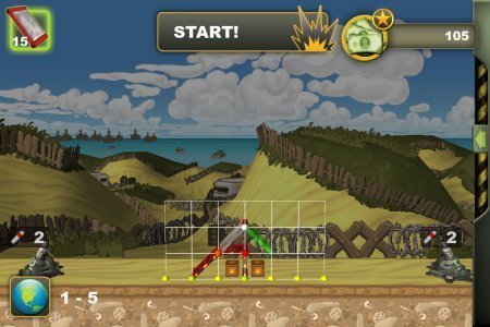 Bunker Constructor – интересная строительная стратегия на системе андроид, где тебе нужно будет выстраивать прочный бункер. На длительности сорока пяти уровней твоей целью будет выстроить железный с бетоном бункер, применяя для этой цели разноплановые материалы к примеру, как – железные блоки, бетон и даже присутствуют блоки с броневой охраной. Для достижения самых лучших вершин соединяйте предложенные в проекте частички и прими существенно иной результат. После завершения создания бункера на него будут непосредственно нападать противники, обстреливая его с применением артиллерии, сильных танков и мощных бомб. Отдай не мало сил, для того чтобы добиться победы над противниками и не допустить того чтобы они разнесли твой бункер. Преимущества – сорок пять ступеней, пять территорий – густой лес, красивый пляж, горы, жаркая пустыня и развалины. Три типа строительных веществ – бетон, балки из стали, защита из брони. Поощрения и меда за стройку.