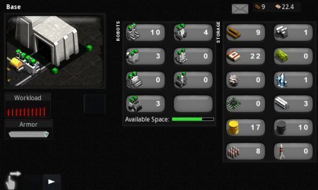 Военно-экономическая стратегия для системы андроид в настоящем времени. Полоса сюжета такова -- роботы вот пришли на новенькую землю с целью разработки новенького поселения. На данной планете много чего нет, важного и нужного для населения, но ведь и роботу этого не требуется. Тебе важно познать географическую планету и не одну, разузнать место расположение нужных ресурсов и начат строительство и развитие собственного поселения. Для этой цели важно выстраивать завод и не один и собирать новеньких роботов. В проекте представлено шесть типов роботов -- транспортные роботы переправляют грузы между всеми помещениями, строители выстраивают постройки, а еще доступные бурильщики они достают кристаллы, фермеры энергетические сорта важных культур, руду, ценный гранит. А еще как без лесорубов они достают древесину, ну и само собой военные роботы нападают на врагов. Кроме создания собственного экономического мира, тебе важно отбивать нападения роботов иных поселений, отыскав их заполучив земли врага и зачищать его базы. В проекте Robotic Planet для андроид твоему вниманию предложено пара игровых параметров -- игрушка одиночка, а еще режим многопользовательского типа через Wi-Fi либо Bluetooth. Предложена двадцать одна карта планеты, плюс обучалка, а еще генератор замечательных карт для разработки новеньких удивительных карт.