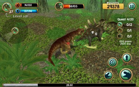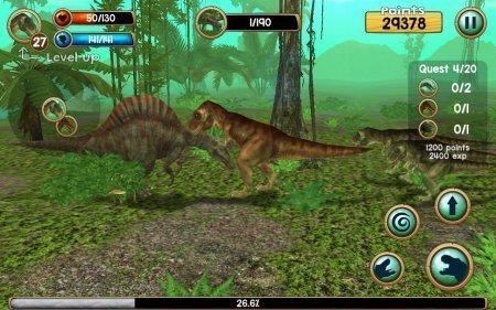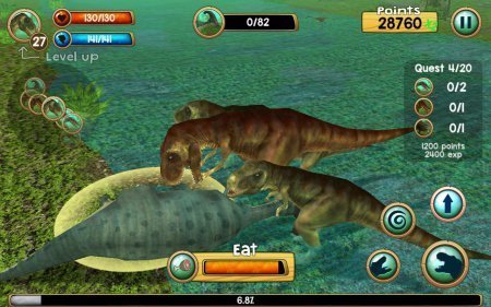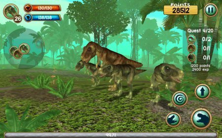 Tyrannosaurus Rex Sim 3D довольно реальный симулятор большущего динозавра, которому придётся выживать в страшном мире. Данная игрушка отправит тебя в далекий период, когда на планете проживали и правили динозавры. Превратись в одного из таких существ и будь выше других динозавров, доставай для себя пропитание и создавай семью. Поднимай уровень собственного здоровья и энергию, доставая воду и пищу, а еще куда же без деток, которых нужно научить вести охоту и делать из них компаньонов во всех начинаниях. Преимущества -- стиль РПГ с развитием твоего персонажа, определи полюбившийся окрас для выбранного динозавра. Поверни камеру и поменяй размер, обстановка реалистичного типа, масса разноплановых динозавров, широкий раскрытый мирок.