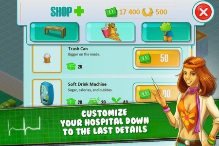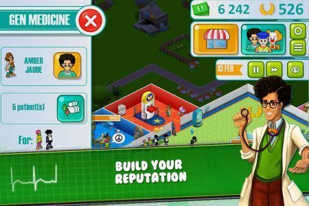 Hospital Manager -- новенький взгляд в формате стратегии на базе андроид. В данный раз ты будешь руководить представленной больницей. Начинать ты будешь почти то с простых стен, а с проходом времени твоя больница станет одним из самых лучших медицинских центров. А еще следи за настроением собственных больных, смотри чего им не хватает, и исполни их предпочтения, так как если что они могут уйти не довольными и дадут мало тебе дохода.