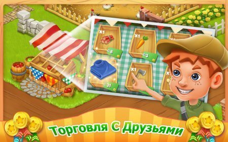 Обучающее сельскохозяйственное приложение Lets Farm на андроид понравится молодым людям, любящим посвящать своё драгоценное время работам, связанным с благоустройством загородной фазенды. Купите большой кусок земли, разбейте на отдельные территориальные локации, сделайте высадку плодовых и овощных культур, соберите урожай согласно заявленному плану, продайте товар через биржу или открытую рыночную площадку регионального уровня.