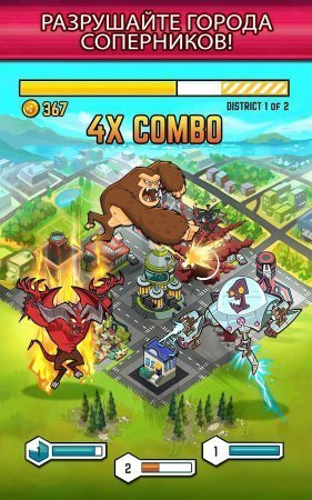 SMASH Monsters – удивительный игровой процесс который представляет из себя такой себе перечень жанров. В ней и ферма и непосредственно симулятор строительного типа и экшен аркада, а также интересная онлайн стратегия и TD. Да к всему этому создатели реализовали достаточно занимательный сюжет и смысловую игровую нагрузку. Теперь под твоим руководством представлена тайная лаборатория генетических изучений и само собой странные ученые выпускают большущих смертельно опасных монстров, которые исполняют различные приказы собственных хозяев. Ну а где еще можно испытать мощь получившихся созданий как ни в существующем мире. Так что, набрав группу по мощнее, проследуй крушить и рушить ближайшие городки. На полученные ресурсы разработай еще более сильных монстров и тому подобное. Кроме сингл компании в игрушке сохранена полноценная онлайн работа, в которой ты способен объединиться с прочими пользователями, перемещаться по виртуальному мирку, осуществляя удары на территории врага.