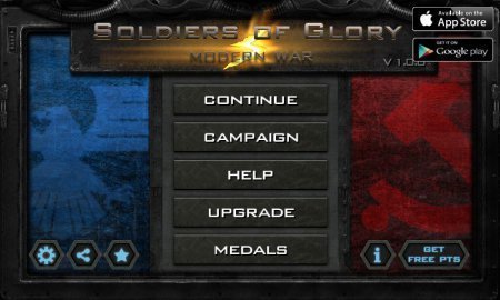 Soldiers of Glory: Modern War для android – игрушек в облике tower defence очень много, что уже хотелось бы что-то новенькое. Данная игрушка как раз то что необходимо. Основной отменностью данного проекта выступает то что не только твои башни выстреливают по противнику, но и противник стреляет по тебе. Остановимся на ее параметрах – в самом начале тебе необходимо себя проявить в совершенно современном противостоянии, а это значит, что само вооружение п укрепление ждет тебя на любое усмотрение, а дальше это полных сто разнообразных локаций, создатели постарались на ура. Орудие – девять новеньких установок, а еще пушки Гатлина, ПВО, генераторы Эми, г Тесла и не только это, мега орудие, сохраняющее частички фантастики графика на высоком уровне, как и физика, а еще сопровождение музыкой, парочка игровых режимов обороны. Три непосредственных уровня сложности нужно проявить себя как стратег, так как твои оборонительные постройки также подвергаются атаки противников, а это означает только одно что их необходимо в нужное время ремонтировать и отстраивать заново в случаи из разрухи. А также противник способен обойти башню и выстрелить именно сзади, поэтому еще не забудь тщательно продумать оборону тыла. Так что не затягивай и вперед. Игрушка не русифицирована.