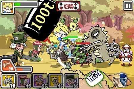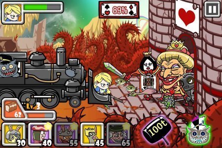 Bloody Alice Defense - в представленном 2D аркадном экшене на системе андроид ты столкнешься с непростой интерпретацией миленькой и хорошей сказки - 'Алиса в стране чудес'. Представленная Алиса – девушка совершенно не из робких и ее отважным духом возможно только восхищаться. Чтобы предотвратить пакости Королевы, героиня взяла в руки орудие и проследовала наводить собственные порядки. В самом начале в руках отважной девушки оказался пистолет и острая мачете конечно орудие не то чтобы мечта, но что есть. Чем дальше продвинется Алиса, тем соответственно больше возможностей у нее останется, к примеру вызов помощника – мышек, мега птичек, кроликов мечников и еще шляпника и не только их. Но для этого результата необходимо собрать больше крошек. После положительных противостояний ты можешь улучшить собственных воинов либо приобрести что-либо новое для самой главной героине. Начни собственный кровавый путь небольшой, но бесстрашной девочки. Игрушка не русифицирована.