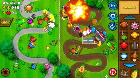 Bloons 5 скачать на андроид – тактическая аркада с обезьянами, вырабатывающая навык управления арсеналом, предусматривающая выполнение стратегических миссий и, соответственно, подъем по лестнице военной карьеры. Ответственно подходите к выполнению android заданий, приобретайте башни, вкладывайте ресурсы в развитие, нокаутируйте врага при первой встрече на поле битвы. Чуть похожа на обезьянью стратегию игра Jungle жара Heat джунглей и Defence Dead разрушитель башен. Жанр, предусматривающий управление военными башнями – вообще отдельная тема…