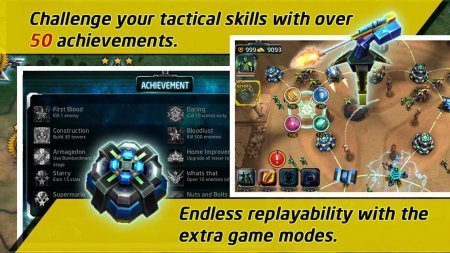 Terran Defence - одна из игр, где нужно защищать башни от множества врагов, и в которой сохранена традиция Tower Defence. Все же разработчики решили внести некоторые изменения в геймплей игры. В игре кроме того, что нужно заниматься строительством базы (создавать башни, более 20 видов) можно еще и управлять уникальными героями. Их так же можно развивать и улучшать, и для этого в игре есть тридцать различных навыков и умений. Думаете, что это не понадобится? Тогда приготовьтесь сражаться с огромной армией врагов состоящая из пятьдесят различных видов, которые возглавляет сложные и опасные боссы. Но это увлекательно, так как миссий много, а геймплей имеет продолжительность более двадцати часов. А еще можете получить большое количество достижения (их пятьдесят). Ну а если надоест одиночная компания с ботами, то можно попробовать мультиплеер с другими игроками, или попробовать сыграть со своими друзьями, и узнать кто лучший стратег. Сюжета как такового в игре нет, нужно просто возглавить оставшихся в живых людей, и сражаться против инопланетян. Русского языка увы нет в игре.