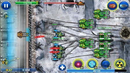 Tank ON - Modern Defender – очередные новенькие танчики на базе андроид для тех кто любит грохот пушек, звук двигателя. Это проект аркада с частичками ролевой игрушки. Тебя ждет занимательный бой по защите собственной базы, устраняя джипы, танчики и даже вертолеты врага. Да еще нужно сказать, что ты будешь руководить турелью, а не танком, перемещая ее вдоль собственной базы, устраните атакующую технику перед тем как она доберется именно к тебе. Да еще твоя турель имеет силовой полет, благодаря нему возможно ловить снаряды, для того чтобы они не попали в твою дорогую базу. За каждую устраненную единицу ты получишь монетки серебренного типа, а за исполненные задания и плюсовые вообще золото. После преодоления уровня их возможно потратить на улучшение орудия и поднятия уровня защиты представленной базы. Еще у тебя имеется способность использовать конкретное орудие к примеру орбитальную пушку ионного типа которая может устранить парочку целей одновременно. А вот удар электромагнитные волны может заморозить технику врага. А силовое поле защитит всю твою базу. И это еще не весь перечень.