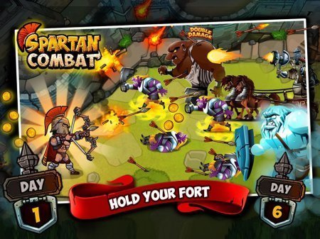 Spartan Combat – занимательная игрушка приключенческого формата на системе андроид, в которой ты перенесешься в Спарту и постараешься ее защитить. На великую страну была произведено нападение монстров из иного мира. Только один отважный лучник стремиться уберечь ее. Но для этой цели ему необходимо орудие и боевые припасы. Их ты будешь приобретать на полученные денежки, которые будут лежат от устраненного чудовища.