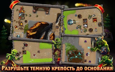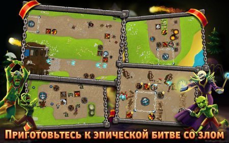 Royal Protectors стандартный Tower Defense на базе андроид, в нем тебе нужно будет защищать собственное царство от натиска противников. Твое царство и так находится на грани серьезной войны и начали нападать страшные гоблины, орки и даже очнувшиеся мертвецы. Тоя цель будет непосредственно будет оборудовать собственные башенки самым серьезным орудием чтобы не один противник не прошел и ни при каких условиях не заполучил твое царство. Для собственной защиты еще примени собственное силы верховного мага, которое рушит все на собственной дороге. А еще помни что нужно защищать собственного колдуна которые можешь замораживать, обливать кислотой либо использовать свои главные заклинания, которые не знают преград. Помни что маг очень важен и если он погибнет, то тогда ты будешь считаться пораженным. Преимущества – двадцать шест занимательных уровней на тринадцати предложенных картах, сорок два улучшений для воинов и магов, сорок достижений для пользователя. Поднимающаяся сложность проекта, с вариацией его регулирования на каждом предложенном уровне, стандартная игрушка из тематики Tower Defense.