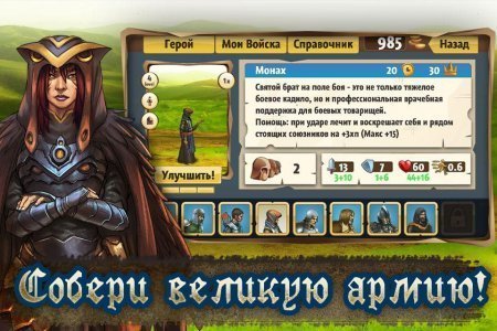 Top of War -- одно из качественных тактических стратегий на системе андроид, кроме широких возможностей для раскрытия собственного таланта полководца в проекте полностью присущ элемент ролевки. Происходящее Top of War начинается в фантастическом мест, группы орков, их мозг был запылен старинным злом, которое подходило к границам мира народа и теперь жизнь населения зависит от одного из четырёх персонажей, самых ловких полководцев. Определив собственного героя проследуй на защиту населения всего мира. Борьба будет случаться в густой чаще, в жарких песках, на снежных пиках гор, каждое сражение по-своему удивительно, так как все воины, как и твои солдаты имеют разноплановые возможности и для того чтобы получить победу нужно очень точно приготовиться к борьбе. А в течении сражения определить для себя лучшую тактику. А для того чтобы получить непосредственно преимущество на самом поле игры нужно просчитанное развитие армии и персонажа, каждый воин имеющий перечень умений может внести решающую точку в представленных сражениях.