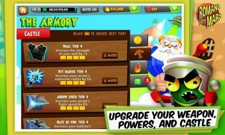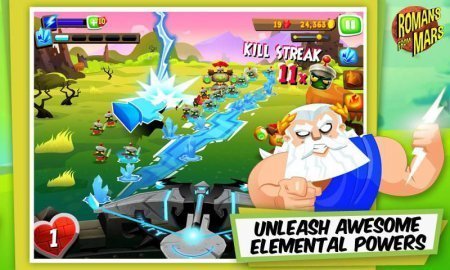 Romans From Mars -- проект на базе андроид, который поведает тебе о соперничестве римлян и марсиан. Нужно сказать, что бог юпитер дал тебе определённые силы, которые могут уровнять шанс на достижения победы над инопланетными противниками. Стань на защите собственного замка, после каждого из уровней улучшай собственное войско и не допусти того чтобы тебя заполучили. Преимущества -- улучшении арбалета, дай свободу собственным силам огня, льду, молнии, земли. Стань на защите собственного замка от десяти разносторонних типов чужеродных противников. Свыше тридцати спехов.