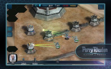 Perry Rhodan: Kampf um Terra -- это привлекательная смесь стратегии в настоящем времени и тематике Tower Defense. Сюжетная полоса напичкана происшествиями, а начинается игрового процесс с полета центрального Перри Родана на великую Луну, на которой он отыскивает космическое судно расы под названием Арконидс. И не смотря на то что судно аварийное и в свой черед было отправлено сообщение SOS на Арконидс, подмога не торопиться. Так как сообщение перехватила раса ящеров, которая позвана Топсидс, которые разными правдами и враньем желают заполучить технологии Арконидс. Но это все так сказать предыстория, а вот стать на защите собственной Земли от нападения инопланетных существ -- вот это самое основное для Перри, который встретился на луне с новенькими нациями.