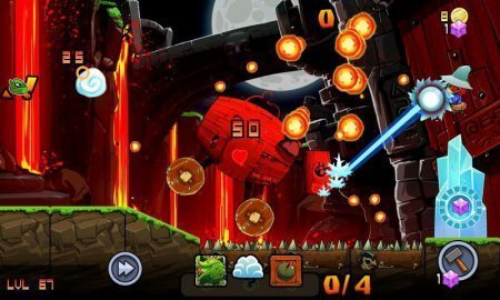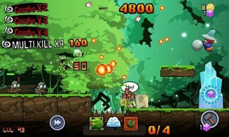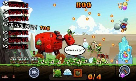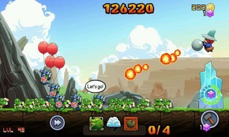 Goblins Rush -- это интересная аркада с цельным экшен сюжетом -- тебе нужно убирать гоблинов. А вот вариант, которым возможно это сотворить -- определись сам, возможно спалить огнеметным шаром, закидать кусками льда либо же просто взорвать раз и на всегда. И таких полных три мира и семьдесят два уровня серьезного сражения с волнами гоблинского рода. Проект чем-то напомнит Tower Defense, но только по тому что нее необходимо защищаться от нападений мутантов, которые постоянно стараются прорваться к тебе и устранить. Если уж тебе уровень будет казаться легким -- тогда для поклонников острых впечатлений предложен режим в темную -- испытай силы поверь скучать не придётся.